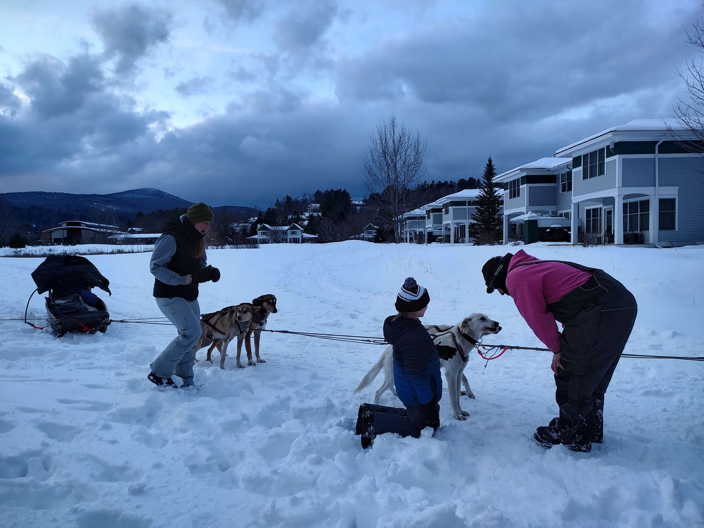Experience an unforgettable evening dogsledding tour in Stowe, Vermont at Stoweflake Mountain Resort and Spa. Huskies in the Kingdom provides an exhilarating adventure perfect for all, whether you're a family, a couple, or part of a large group. During this 30-minute program, you'll learn about the fascinating history of dog sledding, bond with our friendly Huskies, and embark on a 15-minute ride!