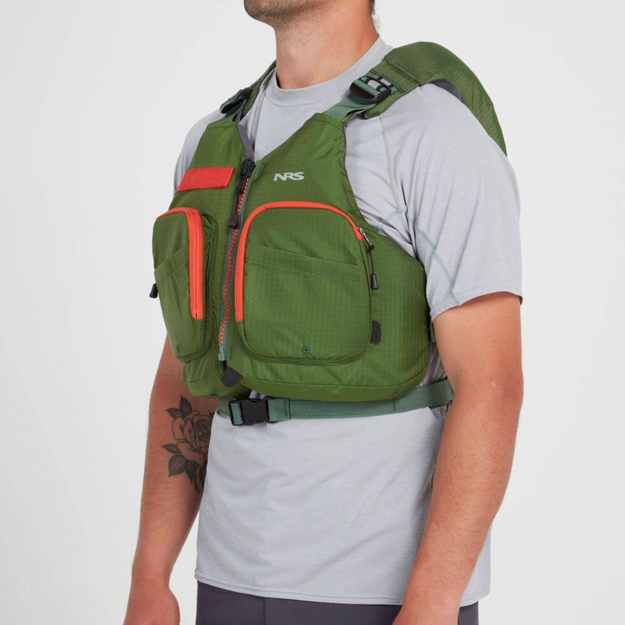 - Back flotation panel conforms to an angler's back, ensuring a flush fit.